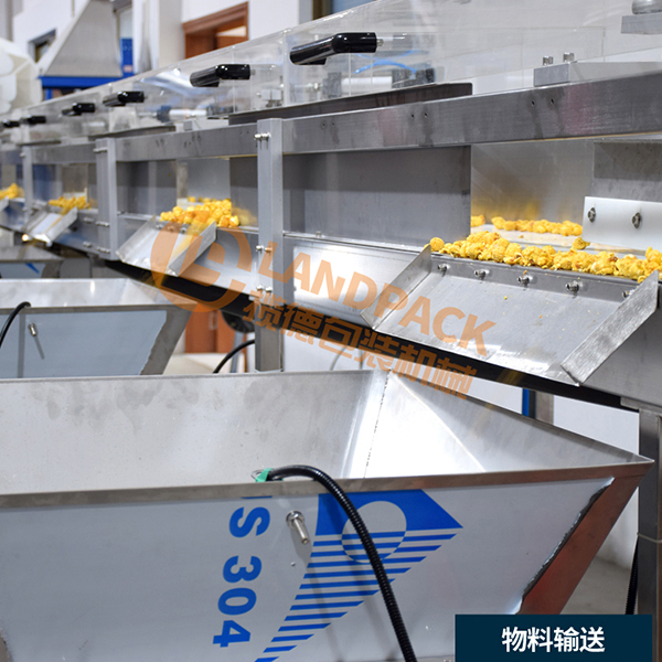 7、爆米花集中供料系統(tǒng)可以連接生產(chǎn)線,成品可直接重檢,金檢機(jī)進(jìn)行檢測(cè),后可以接入紙盒包裝線,形成整套流水線包裝方案,大量節(jié)約時(shí)間成本。